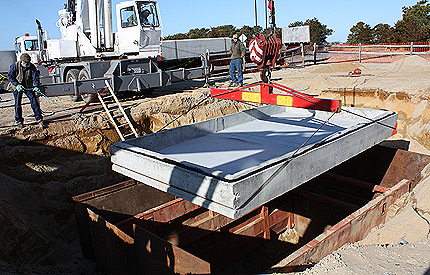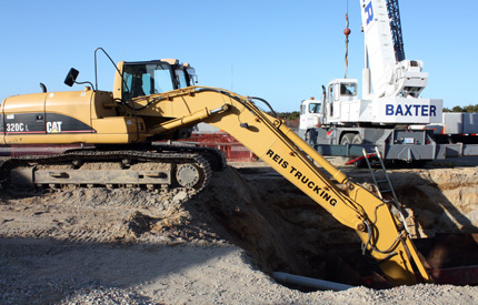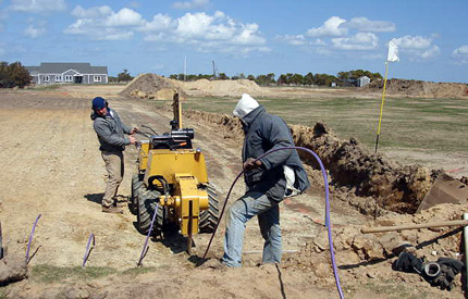 This project involved the installation of a large commercial septic system for the club house and restaurant at the golf club. The work included the installation of 5 tanks (12,000 gal, 8,000 gal, 6,000 gal and 2 @ 2,500 gal) under the club house parking lot and an 8,400 sq ft drip dispersal leaching area under the driving range. Following installation of the system, the parking lot was restored and placed back in service.